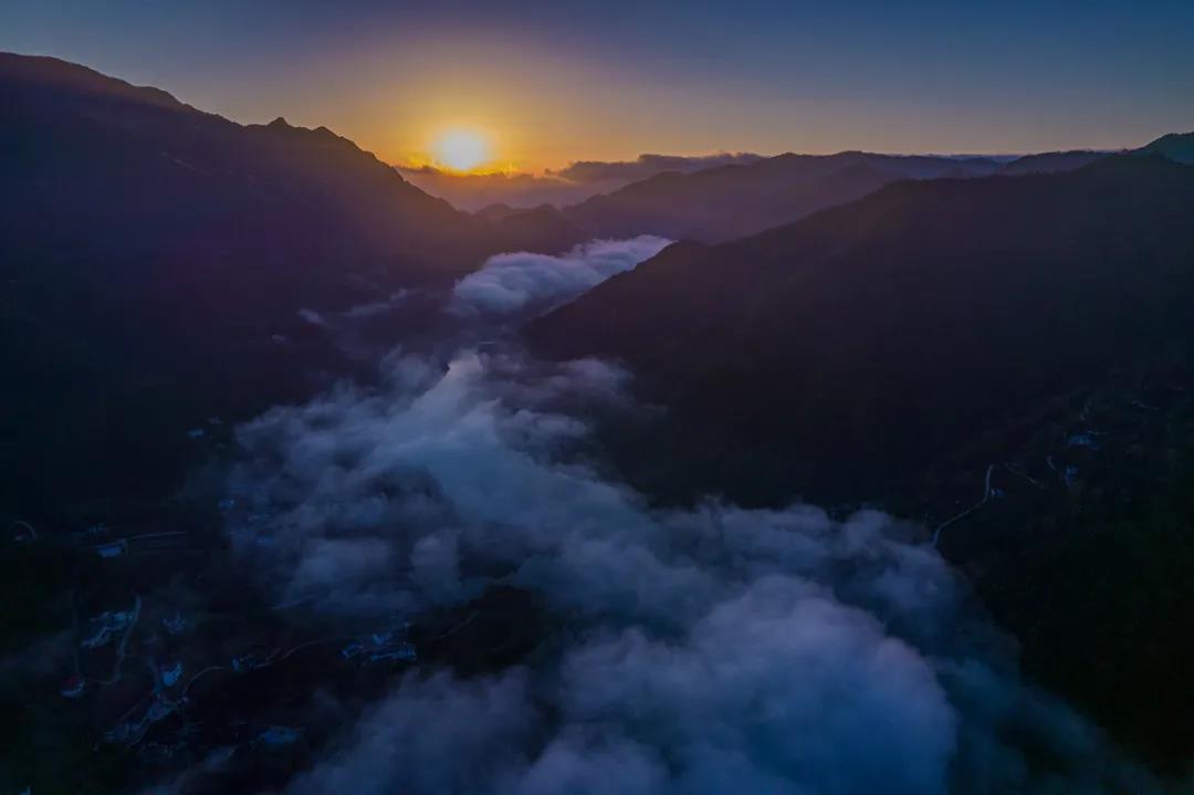 青山之下,村居依山傍河而建