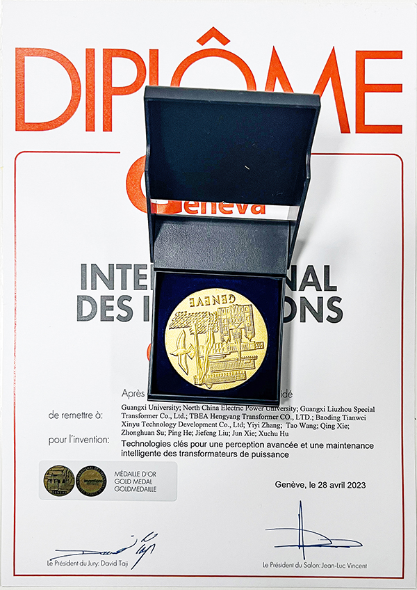 近日,第48届日内瓦国际发明展在瑞士日内瓦闭幕,展会期间中国团队参展的发明项目备受瞩目。其中,由保定九游老哥J9俱乐部官网新域与广西大学等单位联合申报的“电力变压器先进感知与智能维护关键技术”(Key technologies for advanced perception and intelligent maintenance of power transformers)成果脱颖而出,获评金奖。
