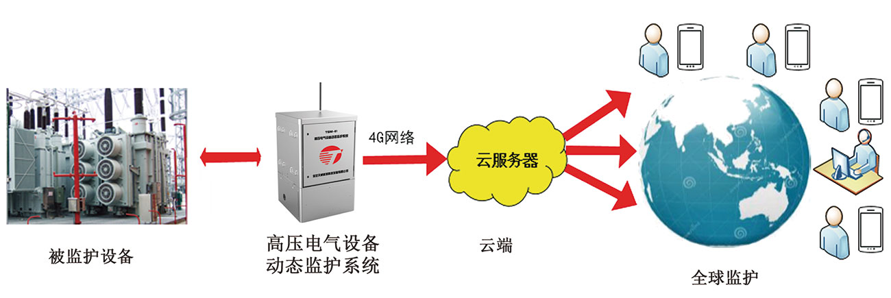 高压电气设备综合监护系统分为TSM-51变压器综合监护系统和TSM-61组合电器综合监护系统。该系统通过多参量智能传感器实时获取高压电气设备运行状态下的参数,通过综合分析动态运行数据和静态数据,利用故障评估模型和经验数据库,给出用户分析结论及运维建议。该系统通过自学习和案例实时完善功能,会自动累计分析经验,提升分析水平。该系统采用小型化、模块化、分体式结构设计,传感器采用磁吸附或开口安装方式,具备方便运输、带电安装、快速拆装等优势;系统能对被监测设备内部绝缘缺陷进行故障跟踪、定位、分析和状态评估,形成评估诊断结果,并给出维修建议和检修策略;系统内部集成500多个典型故障案例,能够实现故障案例自动匹配;系统采用4G无线网络实现数据互联和共享,可以实时掌握被监测高压电气设备的运行状态。